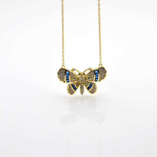 18K Gold Plated Over 925 Sterling Silver Blue CZ Butterfly Necklace