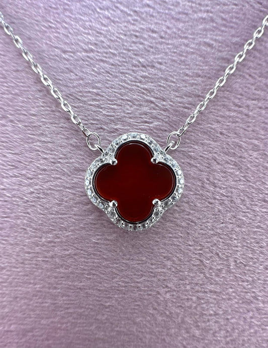 Red Maroon Clover Necklace