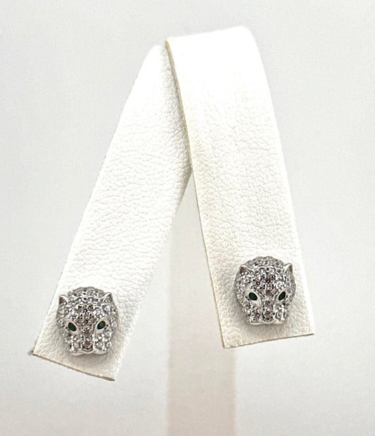925 Sterling Silver Leopard/ Panter Green Eyed CZ Stud Earrings