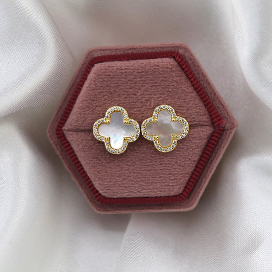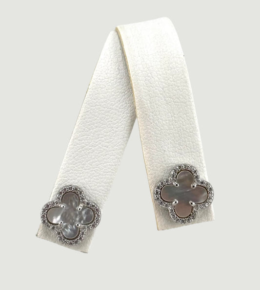 925 Sterling Silver Mother of Pearl Clover Stud Earrings