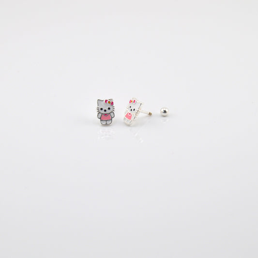 925 Sterling Silver Kitty Screw Back Stud Earrings