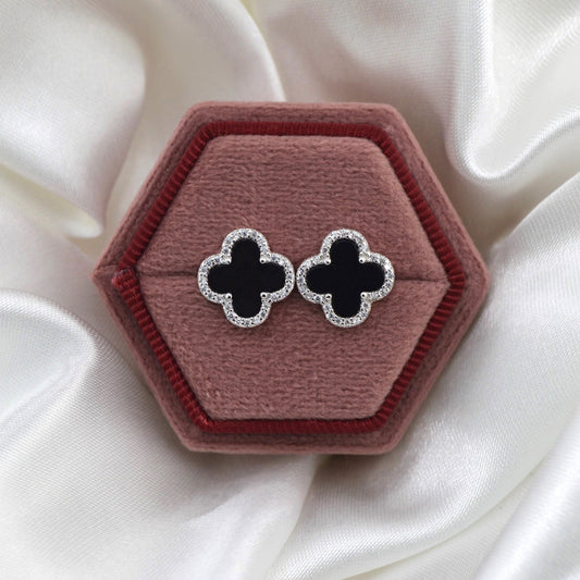 18K Gold Plated Over 925 Sterling Silver Black Clover Stud Earrings