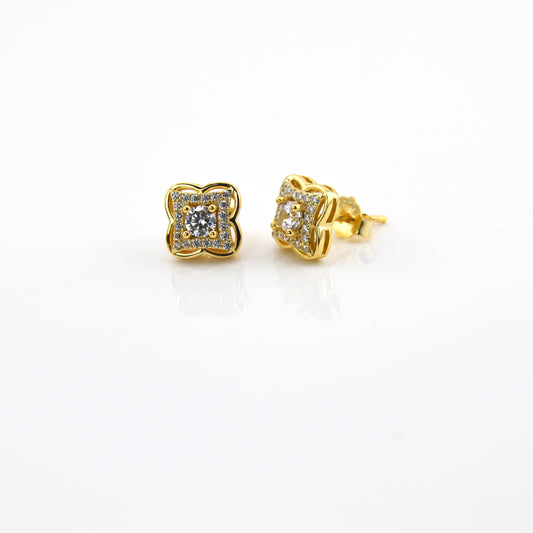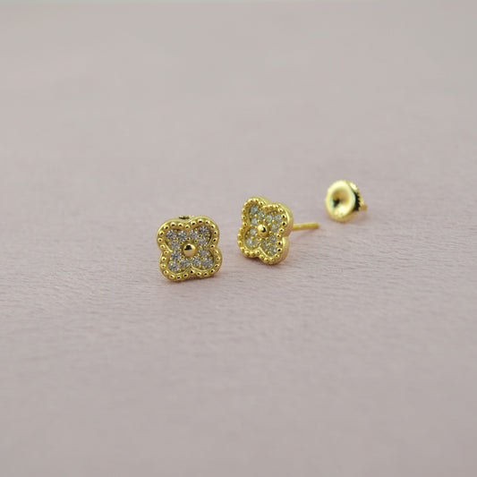 18K Gold Plated Over 925 Sterling Silver Clover Stud Earrings