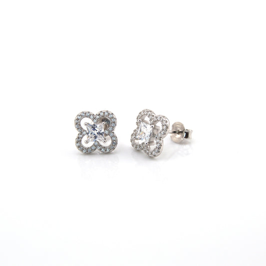 925 Sterling Silver Moissanite Clover Stud Earrings