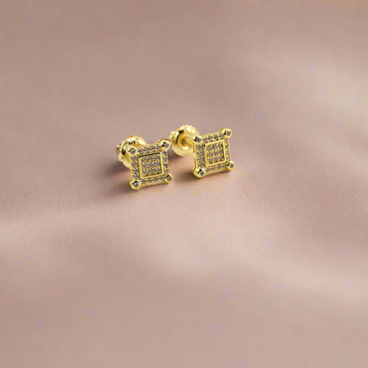 18K Gold Plated Over 925 Sterling Silver Square Screw Stud Earrings