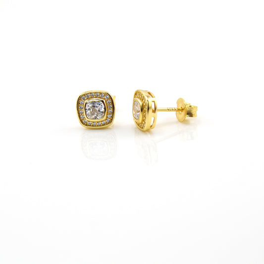 18K Gold Plated Over 925 Sterling Silver Cushion Cut Halo Stud Earrings