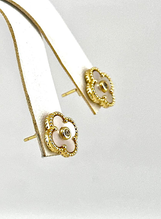 Mother Of Pearl 4 Leaf Clover Studs