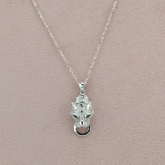 925 Sterling Silver Leopard/Jaguar Green Eyed CZ Necklace