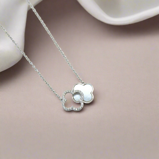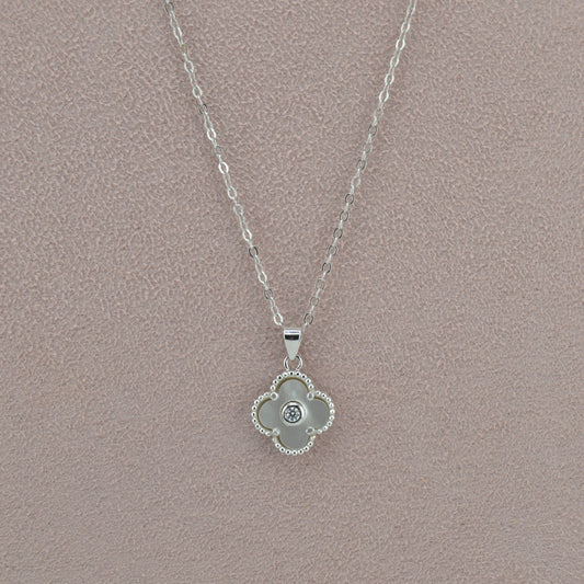 925 Sterling Silver Mother of Pearl Four Leaf Clover Necklace