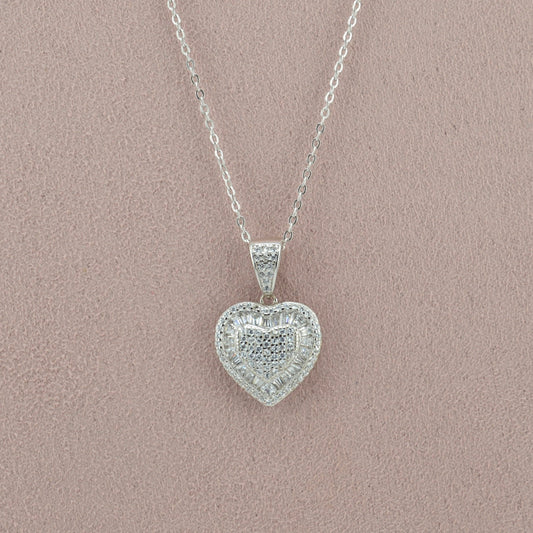 18K Gold Plated Over 925 Sterling Silver Heart Key CZ Necklace