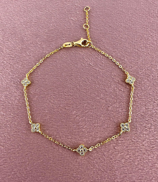 18K Gold Plated 925 Ster Dainty Clover Bracelet