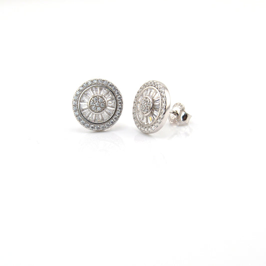 18K Gold Plated over 925 Sterling Silver Baguette CZ Circle Stud Earrings