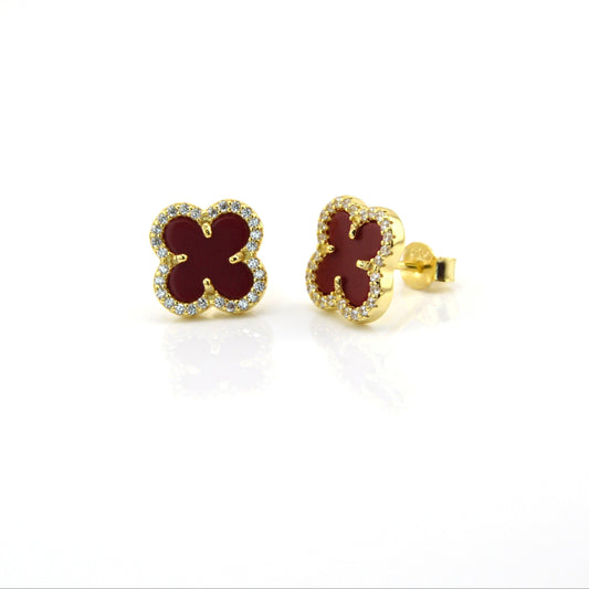 925 Sterling Silver Marron Red Enclosed Clover Stud Earrings