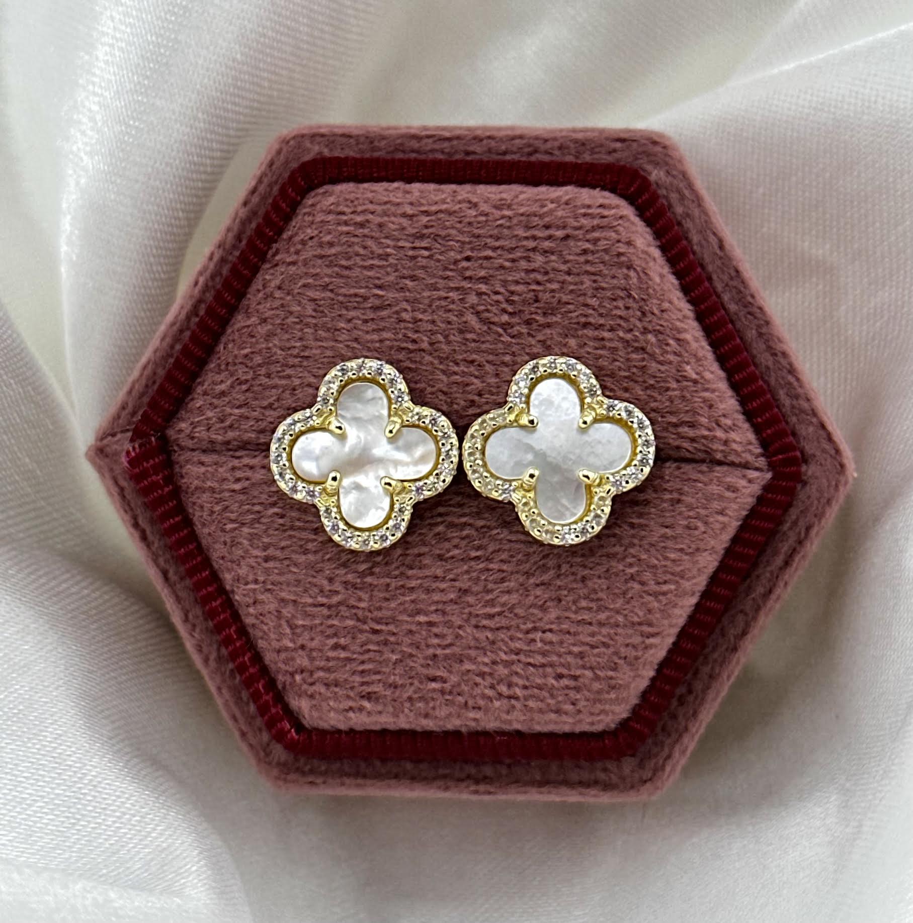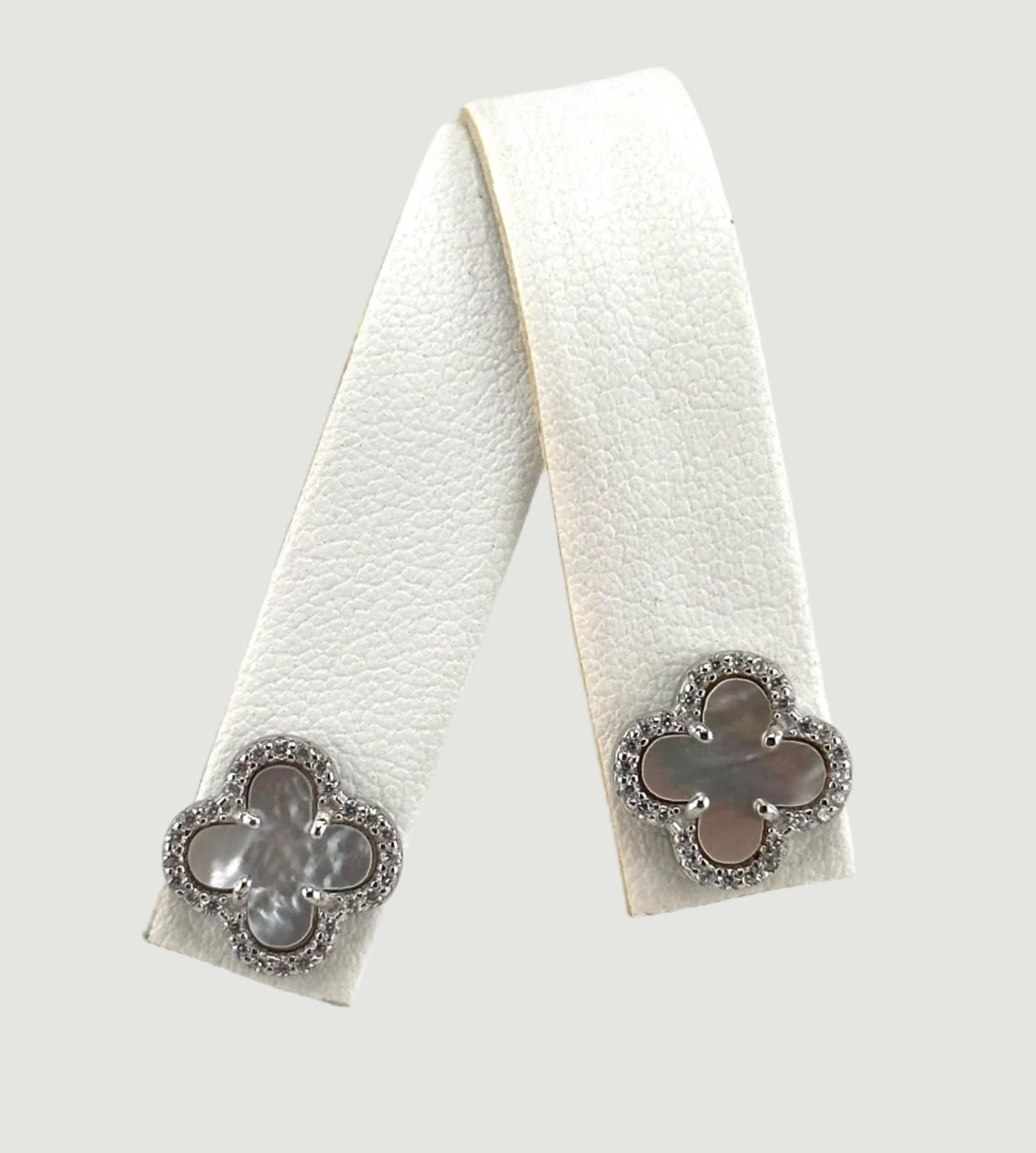 Crafted with 925 Sterling Silver, these Mother of Pearl Clover Stud Earrings add a touch of elegance to any outfit. The four leaf clover design symbolizes good luck, while the mother of pearl and cubic zirconia add a subtle sparkle. Perfect for any occasion, these earrings make a thoughtful and stylish gift.