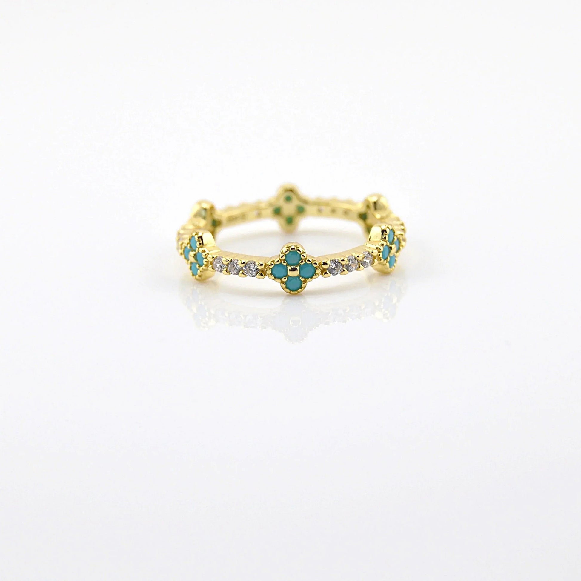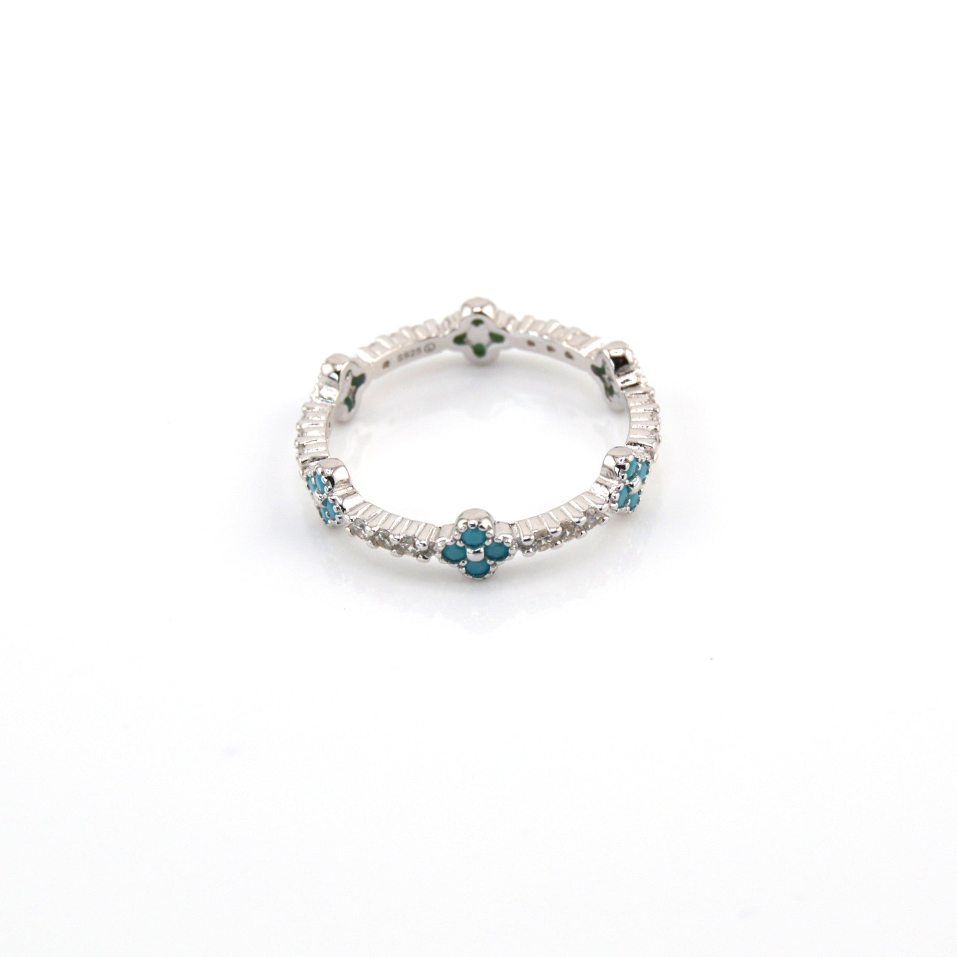 925 Sterling Silver Full Eternity Dainty Turquoise Blue Clover Ring