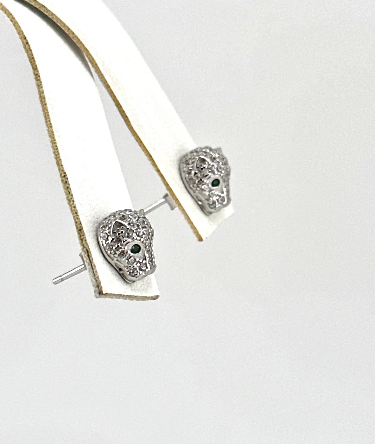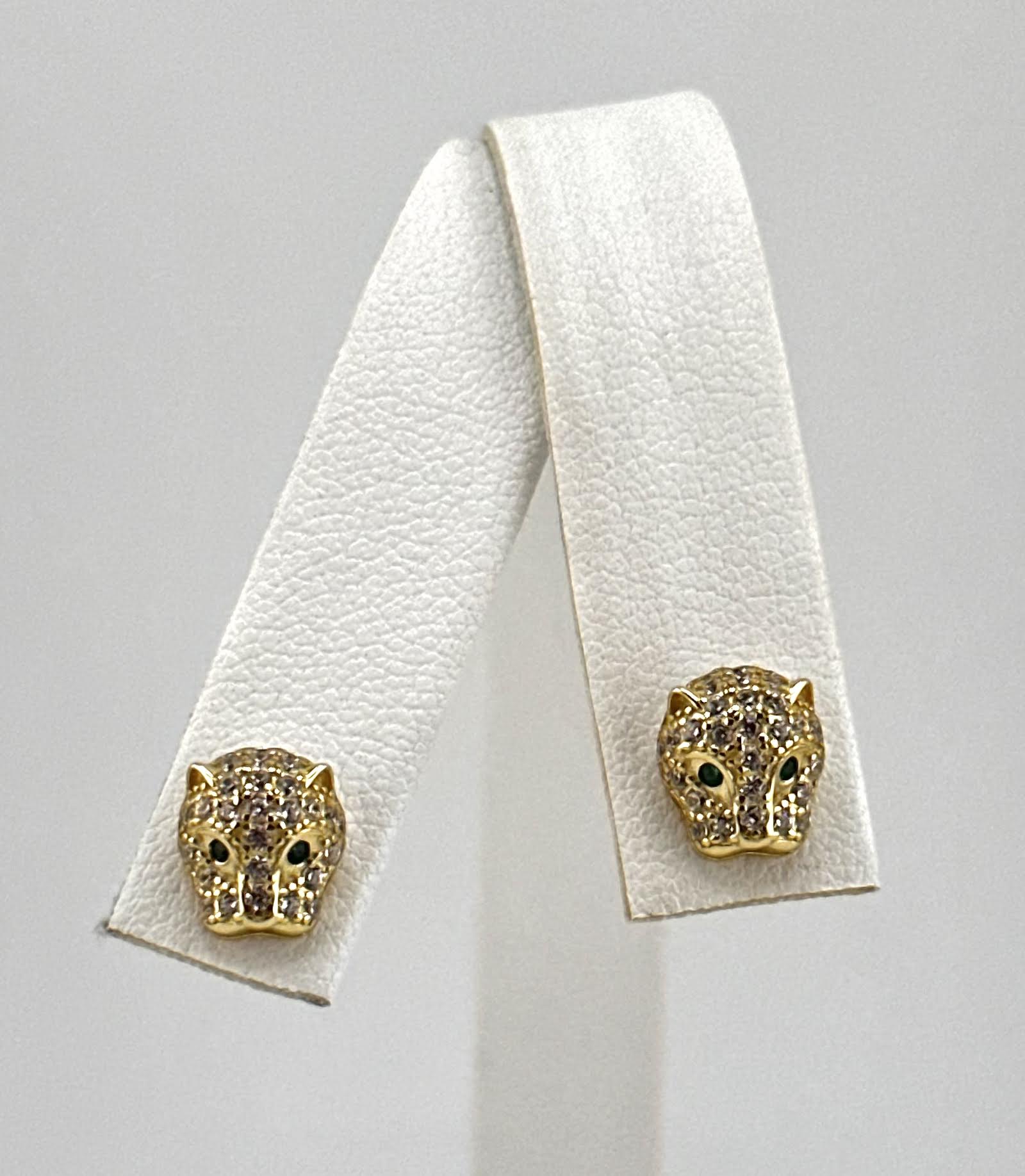 925 Sterling Silver Leopard/Jaguar Green Eyed Dainty Stud Earrings