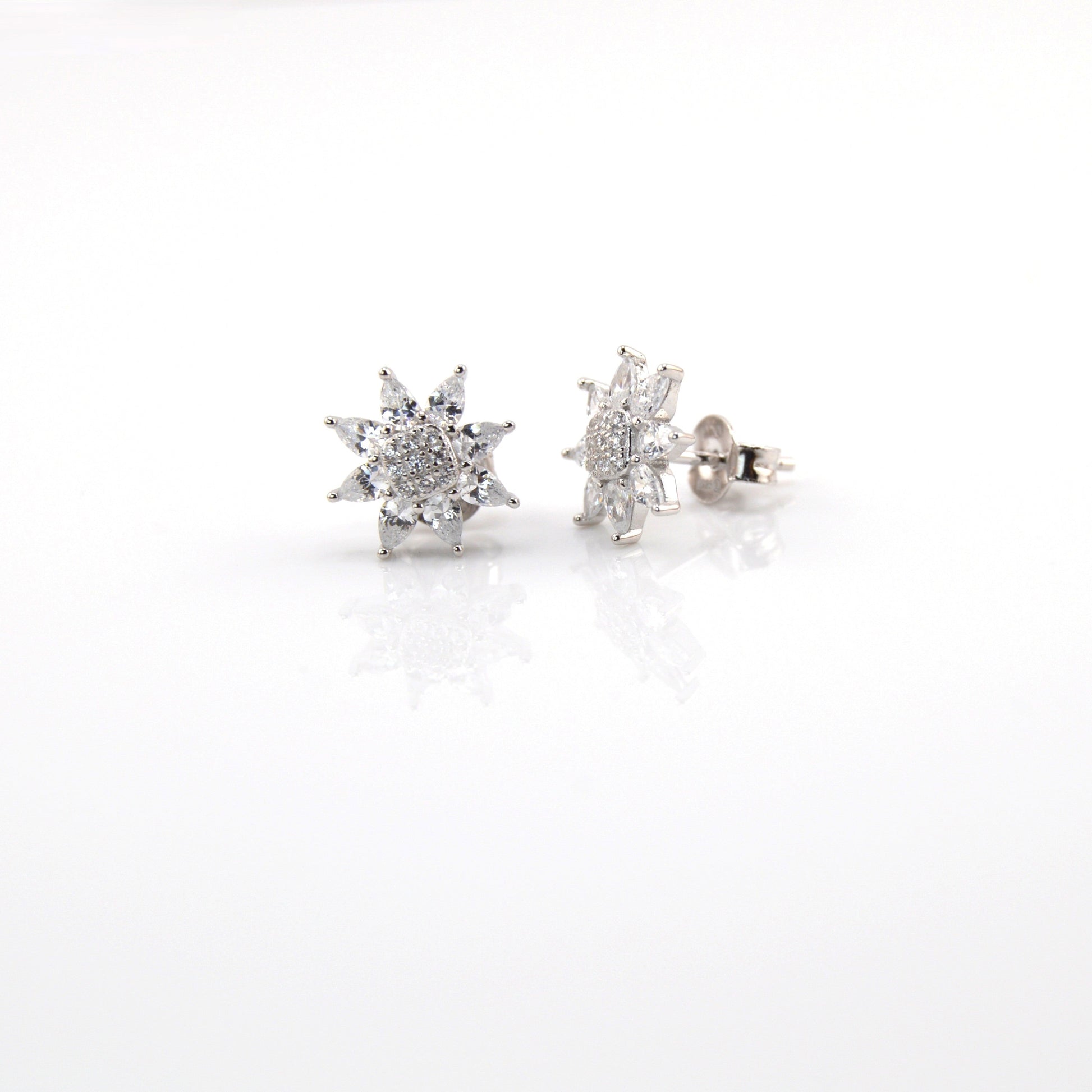 925 Sterling Silver White CZ Flower Crown Stud Earrings