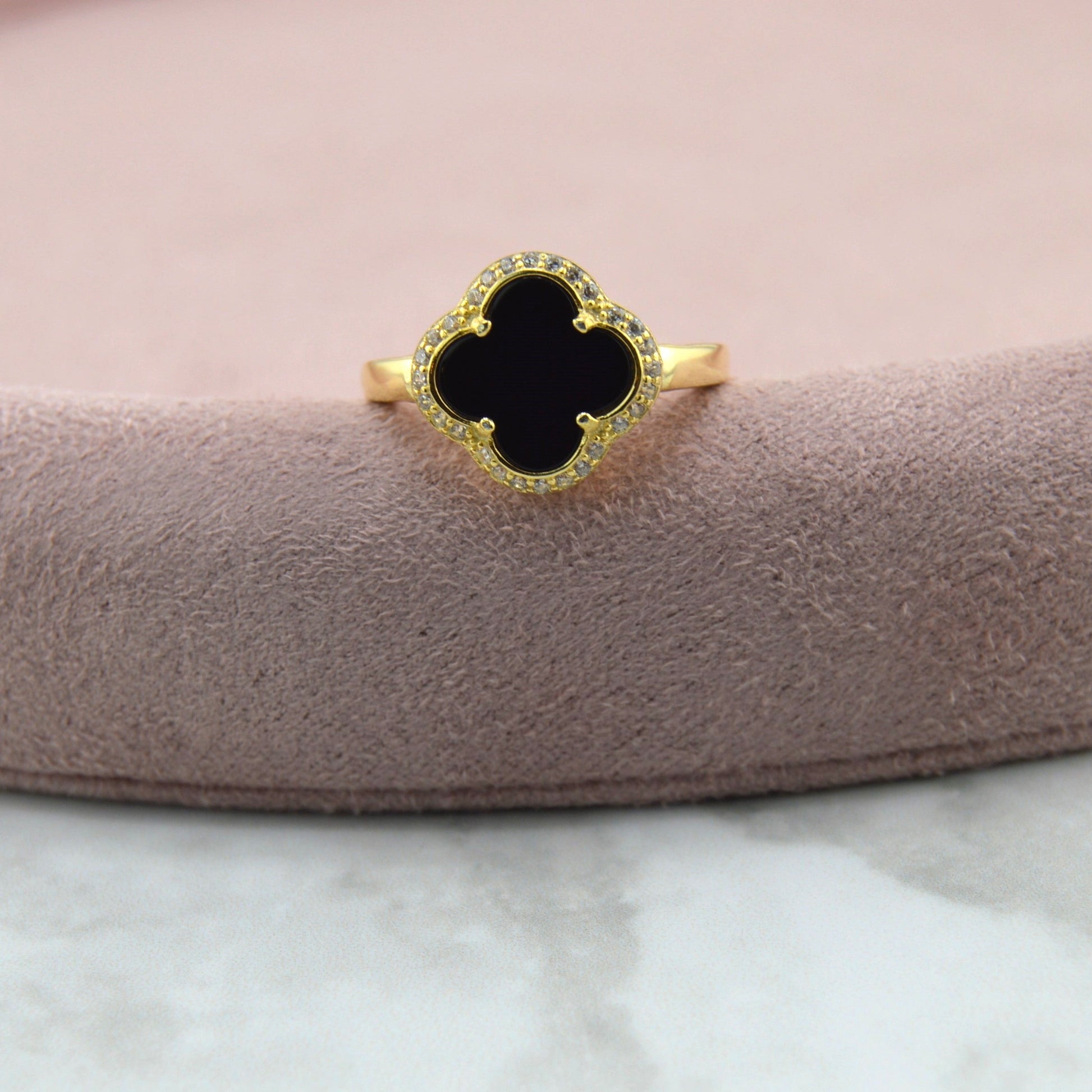 18K Gold Plated over 925 Sterling Silver Black Clover Ring