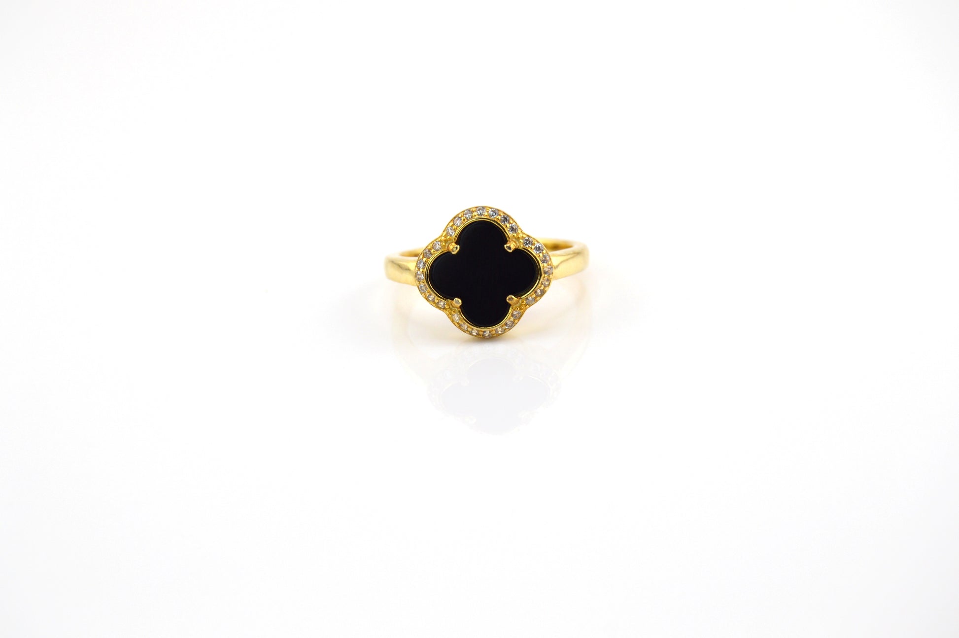925 Sterling Silver Black Clover Ring