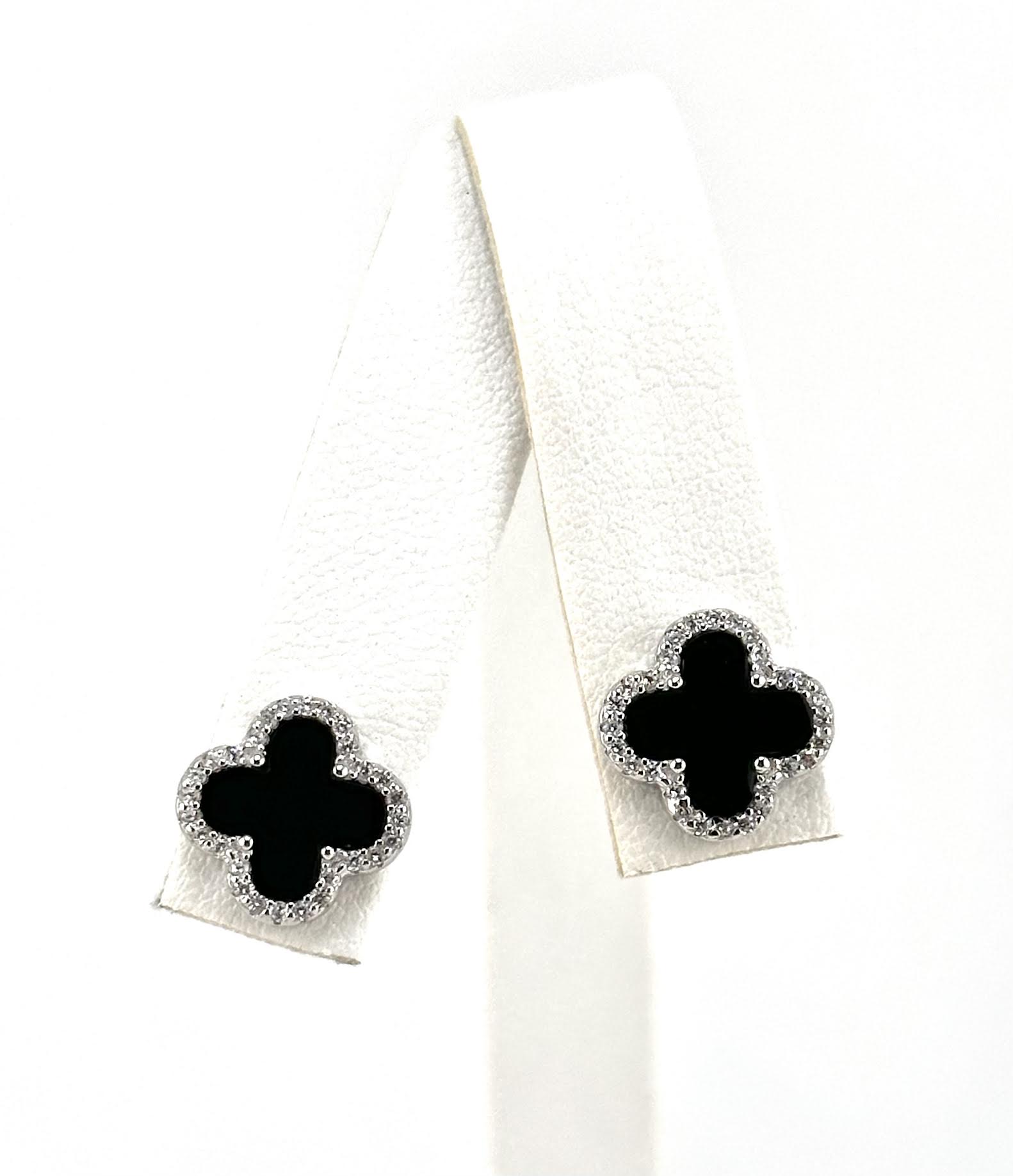 18K Gold Plated Over 925 Sterling Silver Black Clover Stud Earrings