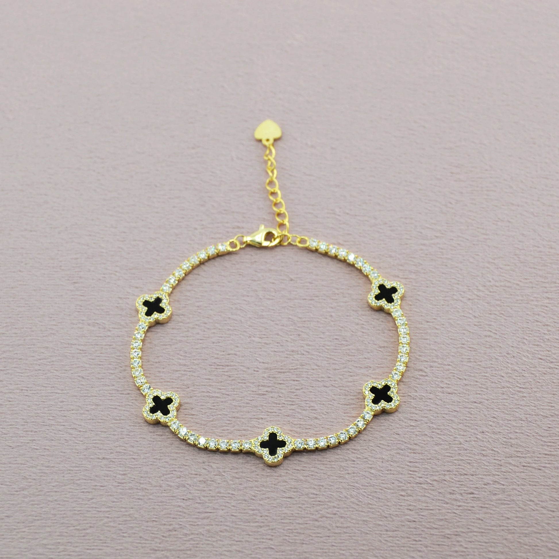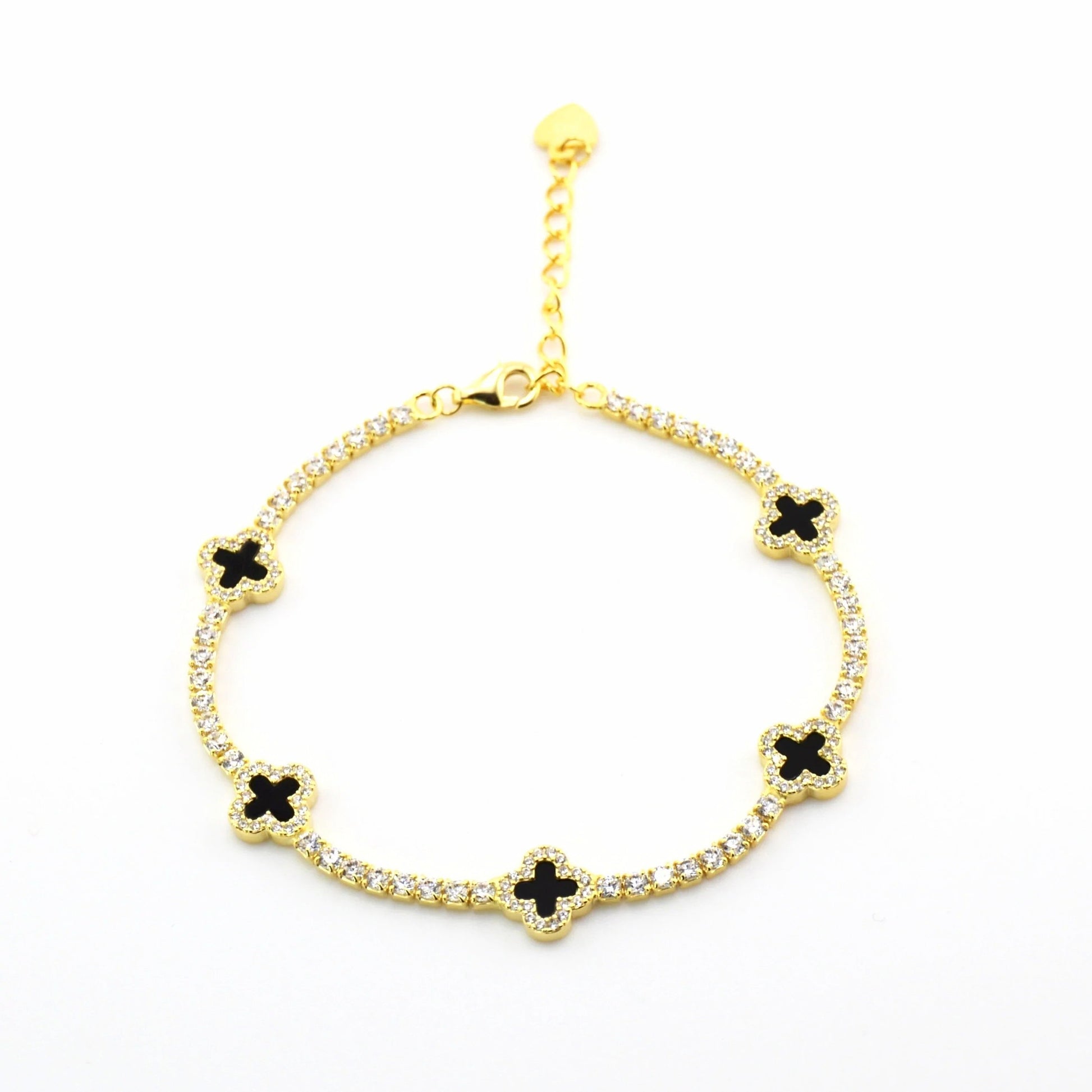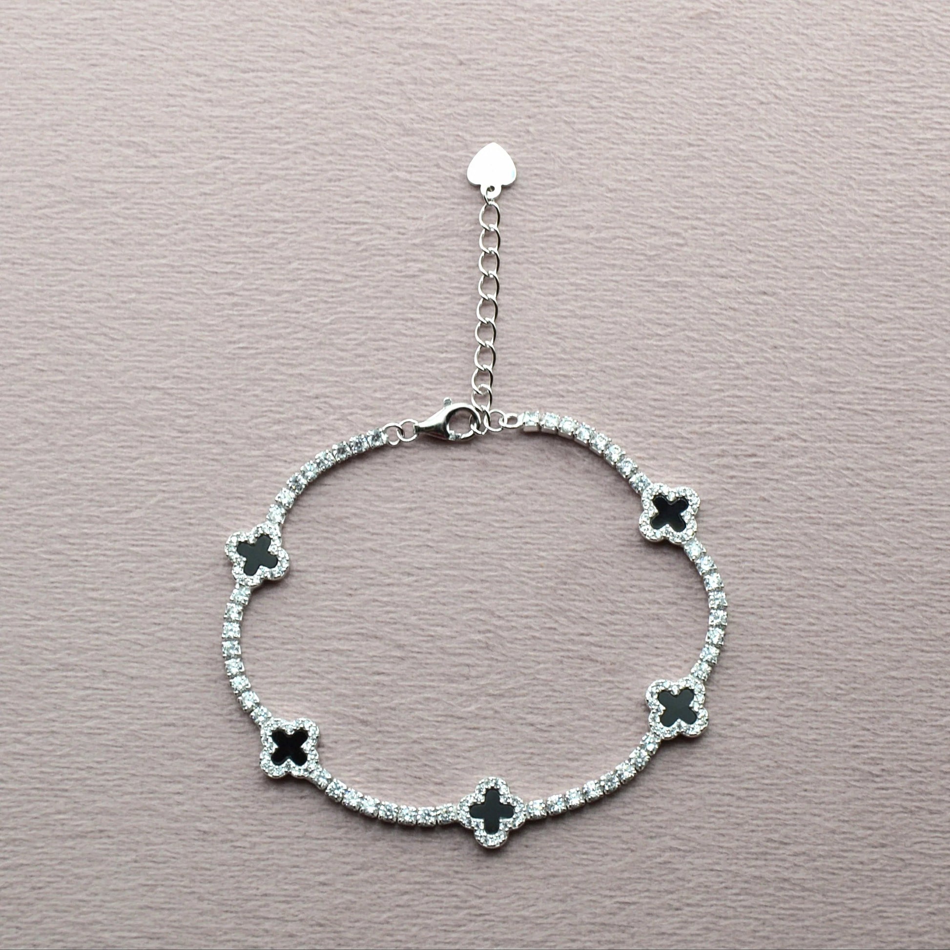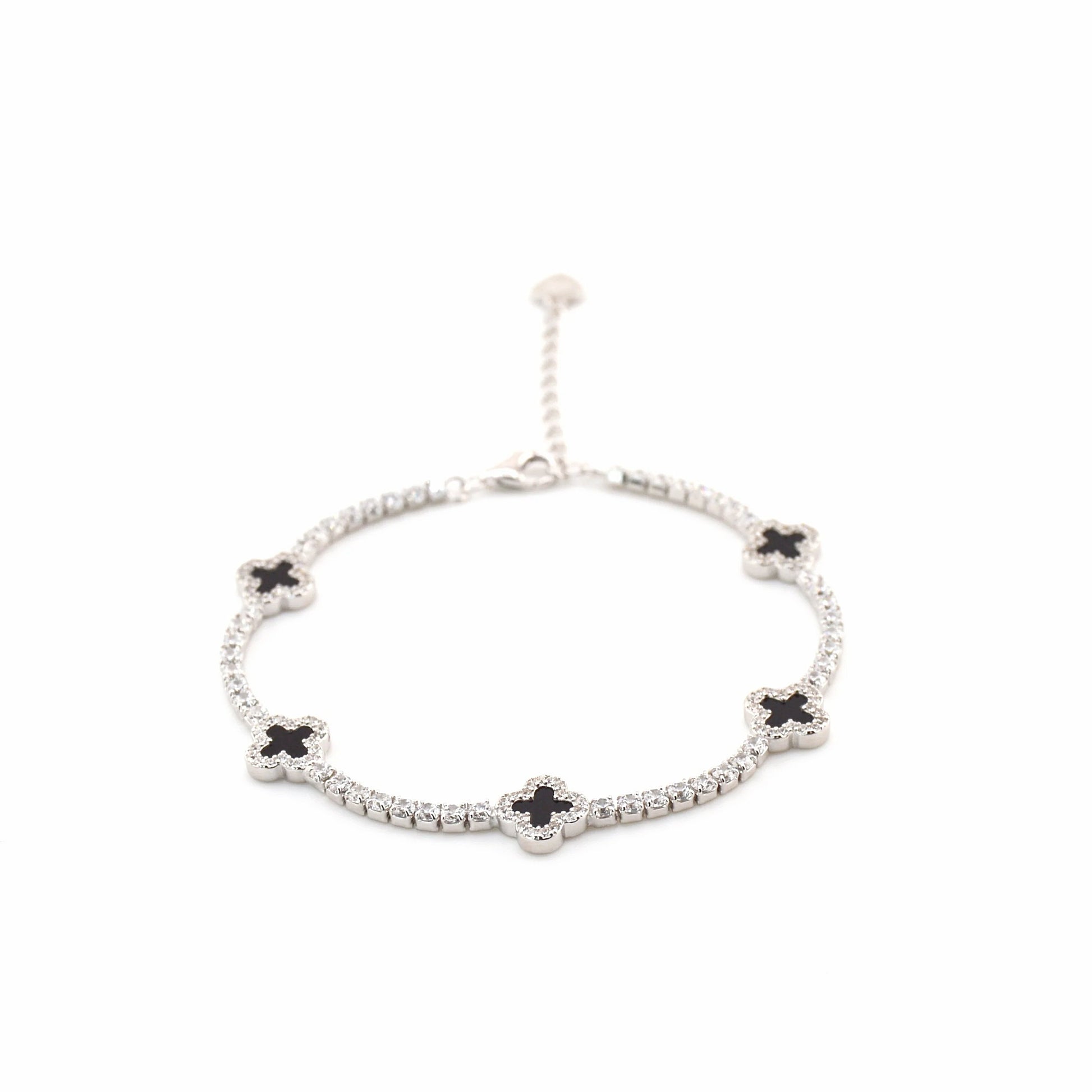 925 Sterling Silver Black Dainty Clover Tennis Bracelet