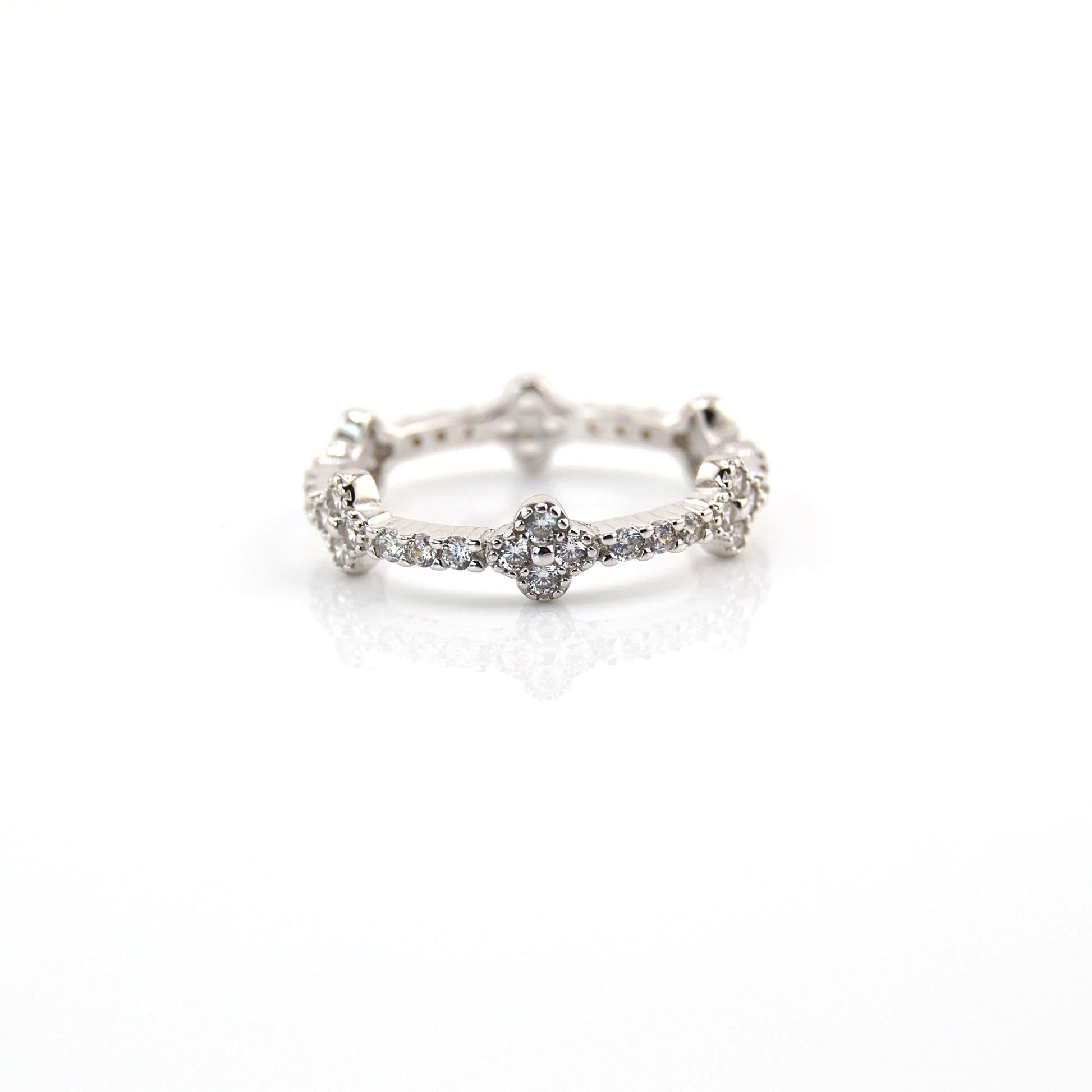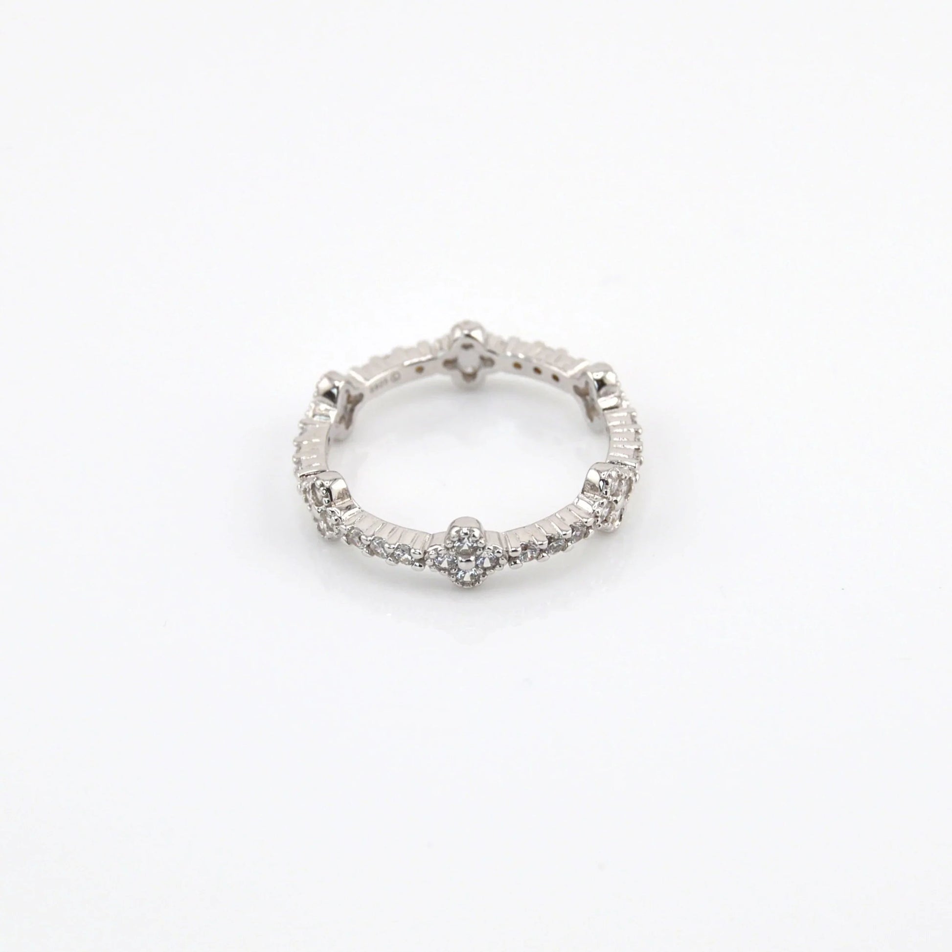 925 Sterling Silver Full Eternity Dainty Clover Ring