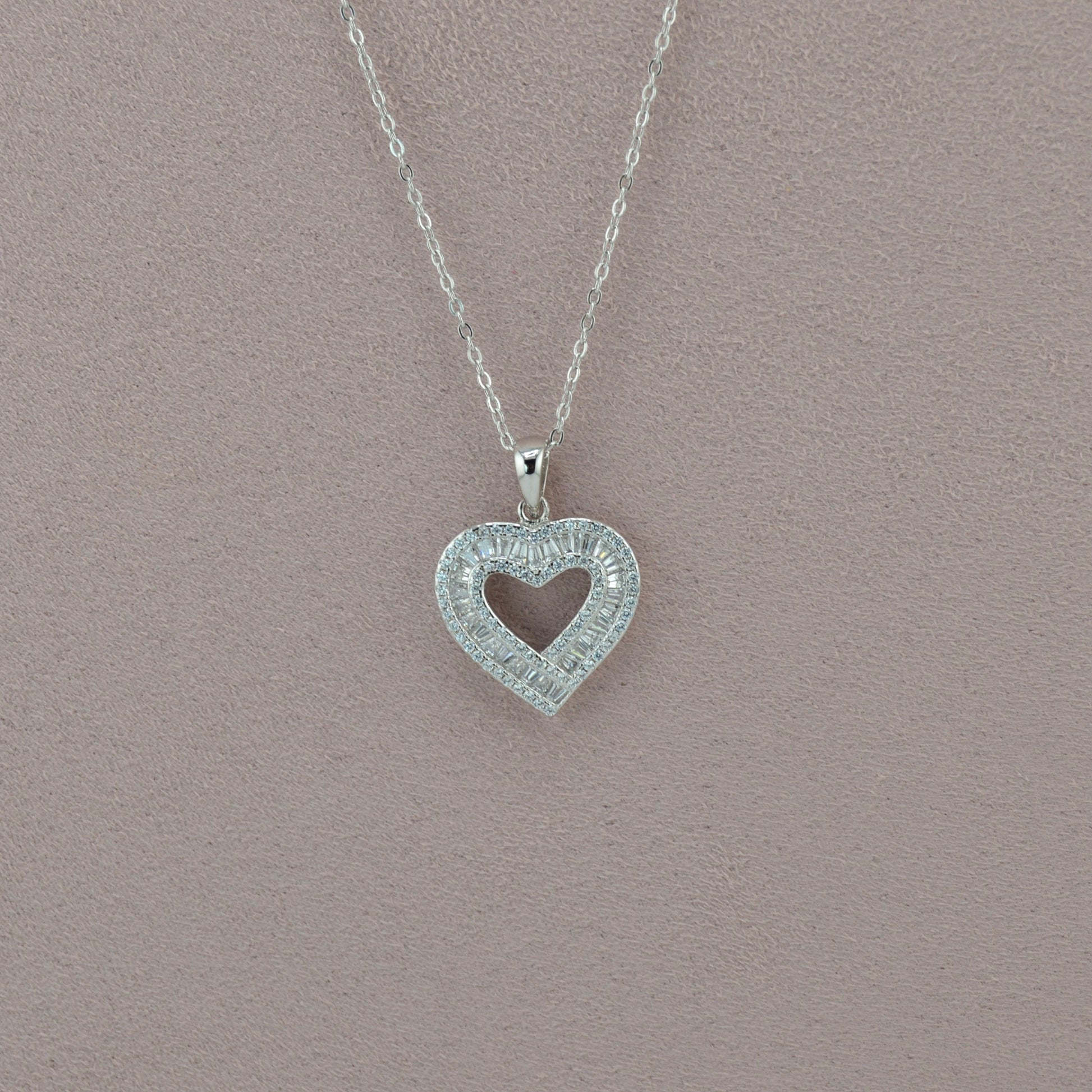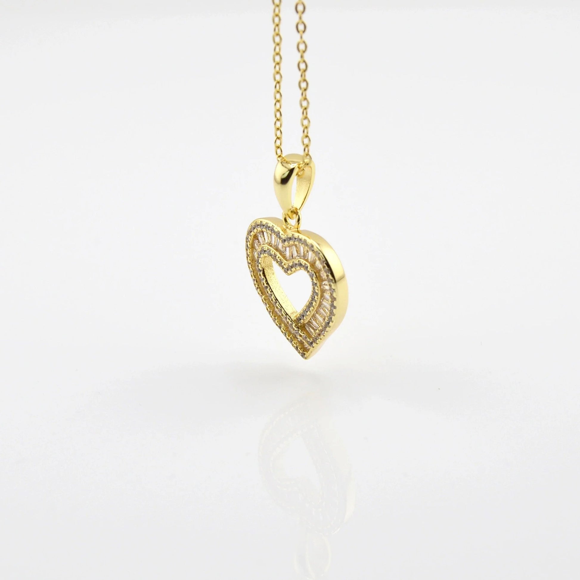 Crafted from 18K Gold Plated over 925 Sterling Silver, this Love Heart Necklace features a heart-shaped baguette cubic zirconia pendant for an elegant touch. Its versatile design makes it perfect for any occasion, adding a touch of sparkle to any outfit. Give the gift of love to yourself or someone special with this beautiful necklace.