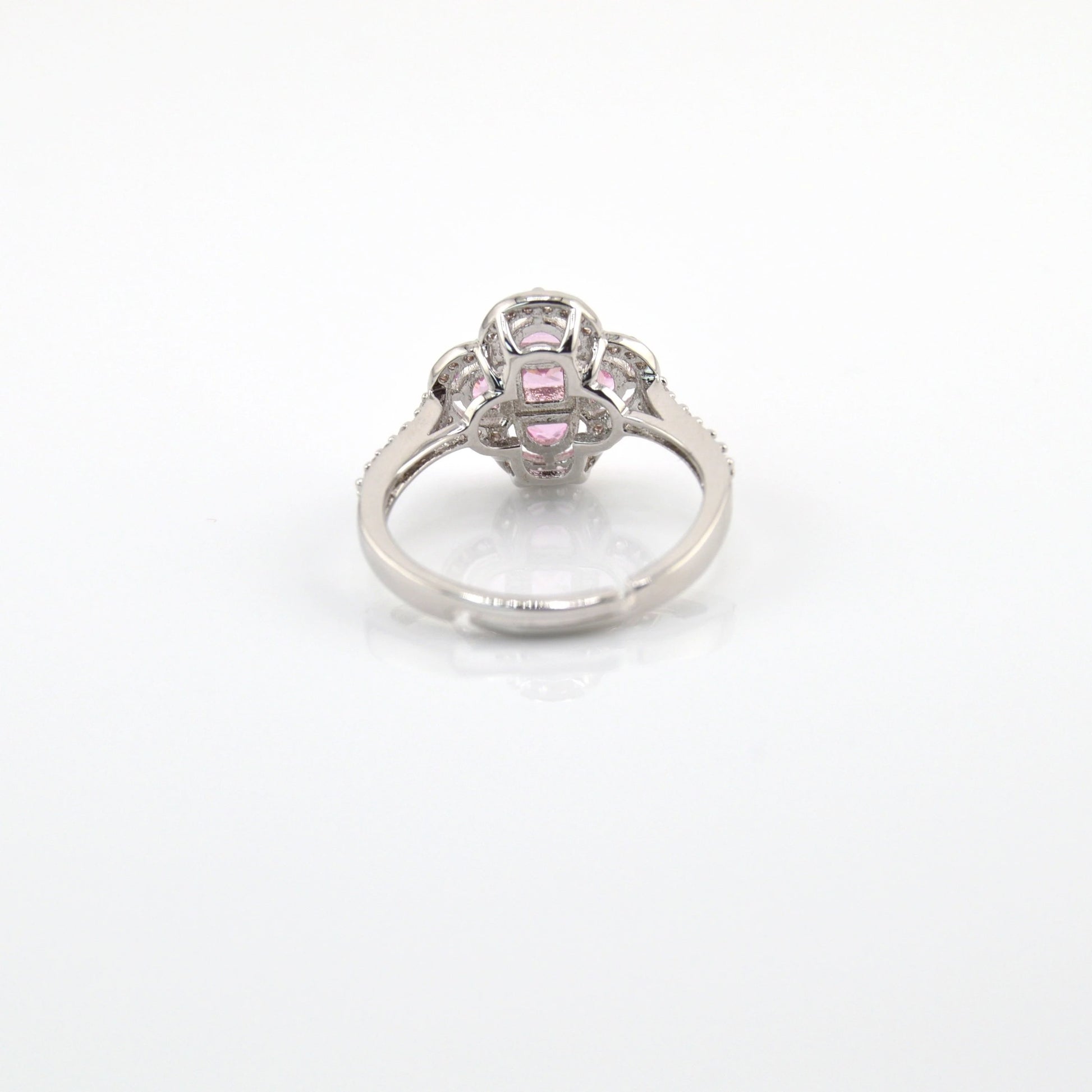 This adjustable Pink Cubic Zirconia Clover Ring features a vibrant cubic zirconia pink clover centerpiece surrounded by sparkling white cubic zirconia. Crafted with rhodium plating over brass, it ensures lasting shine and durability. Its adjustable band ensures a perfect, comfortable fit, making it a meaningful and stylish accessory to brighten your day and bring a touch of luck wherever you go.